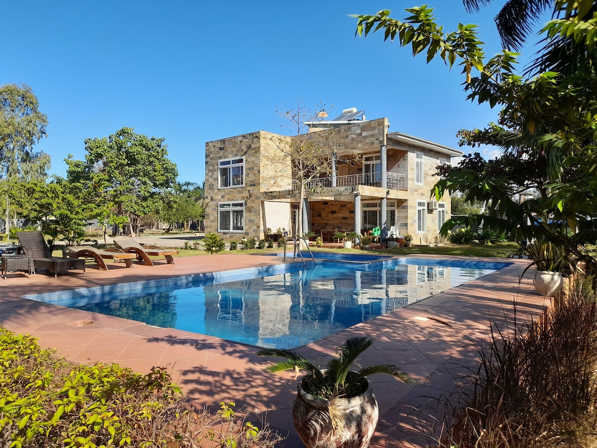 Experience unparalleled comfort and tranquility at our exclusive private holiday home nestled in the heart of Dar es Salaam, Tanzania. This stunning residence boasts five spacious bedrooms, perfect for families or groups seeking a peaceful retreat. Indulge in the ultimate relaxation with your own private swimming pool, where you can unwind and soak up the sun in complete tranquility.