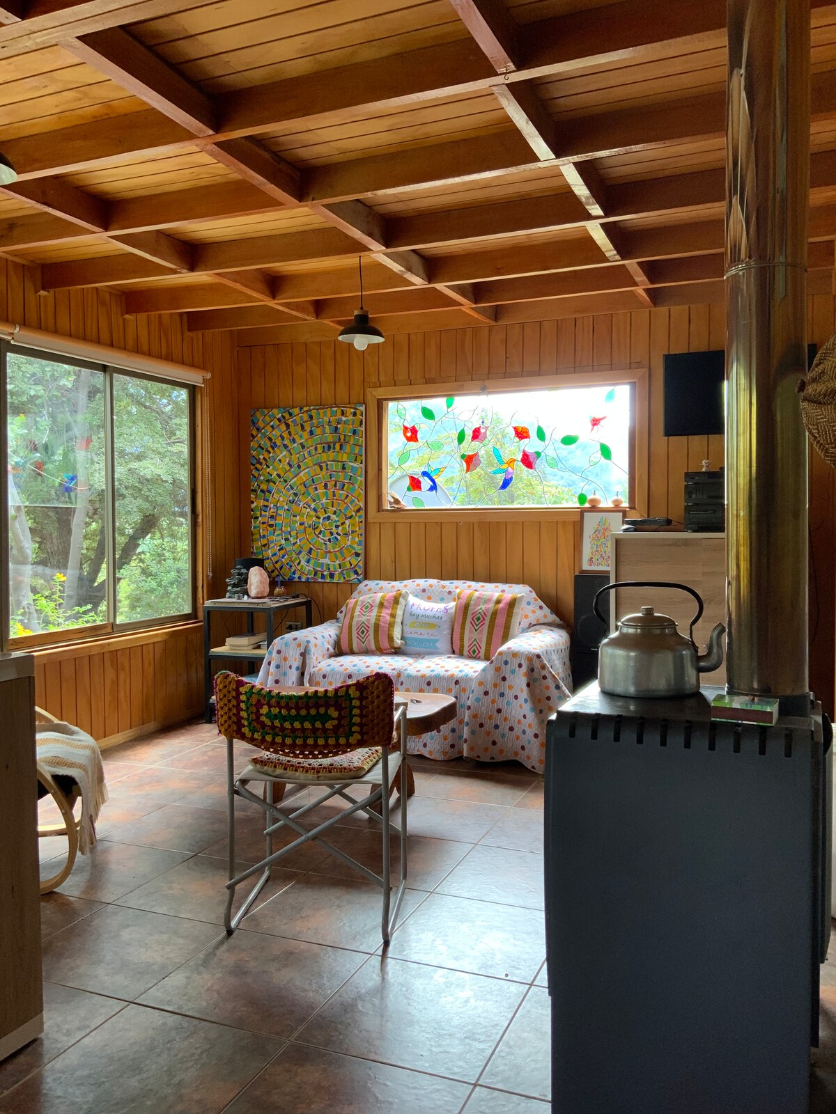 Located next to Route CH231, 15 minutes from Futaleufú. You will find a small cabin with enough light to feel calm and have a moment of rest. From the balcony you can appreciate the local flora and the plantations made by the owner. Tommy the dog owner will welcome you.