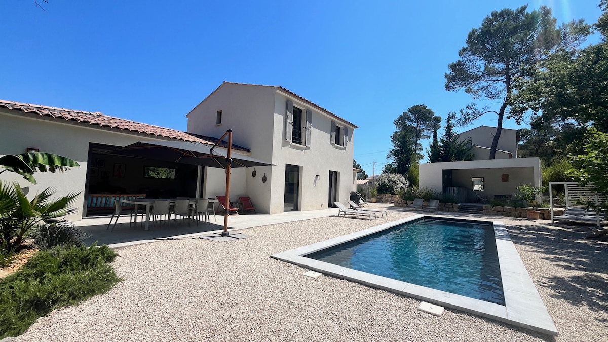 LA VILLA MÉSANGES: This peaceful villa offers a relaxing stay for the whole family, 10 minutes from Aix en Provence. With the pool at your disposal, it will delight young and old on sunny afternoons. ☀️🏊♂️ The house is new and furnished. It has 4 bedrooms with double beds, plus a sofa bed if needed. Air conditioning is present in each bedroom and main room. Please don't hesitate to contact us for more information. Thank you and see you soon