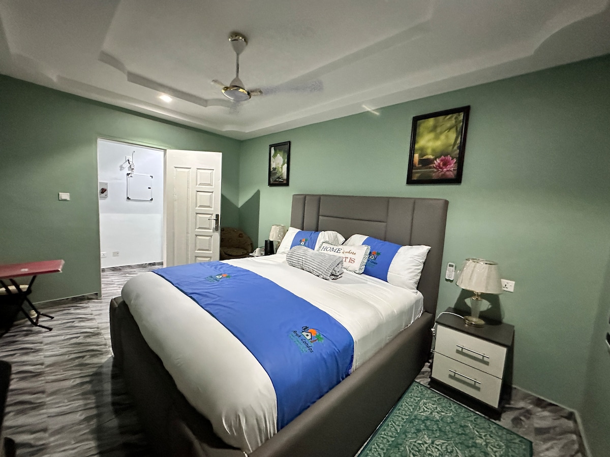 Discover modern elegance and comfort at DAV Hills, your serene urban retreat, is 5 minutes from Pokuase Interchange, 10 minutes from Achimota Mall, and 40 minutes from Kotoka International Airport. The apartment is designed to blend contemporary style with ultimate convenience. Enjoy uninterrupted comfort with solar backup power, constant water and premium entertainment. Relax knowing you’re covered with 24/7 security, secure on-site parking, and ample space for private events or gatherings.