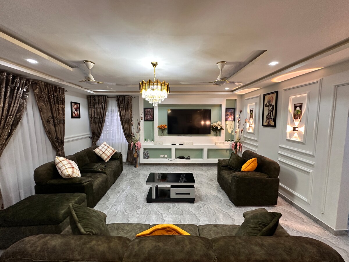 24/7 200kva standby generator and Solar DSTV with full channel access Netflix Breathtaking views High-speed internet Located in the heart of Accra, we're just a stone's throw from Achimota Mall and De Temple social center, perfect for swimming and exercising. The airport is 30-minute drive away. For your convenience, we have a professional laundry service, barber shop, and hair salon on site. Plus, "Ayewamu by Jane" is right next door, serving up delicious local cuisine.