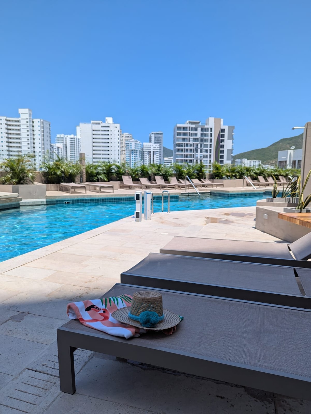 🌊 Live and work by the sea in Rodadero, Santa Marta. 900 Mbps Wi-Fi, plus free-access pools and hot tubs — because luxury and productivity don't have to be mutually exclusive. 🏔️ Modern loft with premium queen-size bed, fully equipped kitchen, air conditioning, TV and private balcony with stunning views of the Sierra Nevada. Everything you need to relax and perform at your best. 📍 A stone's throw from the sea and supermarkets 🍳 Optional services: home chef, à la carte breakfasts and private transport.