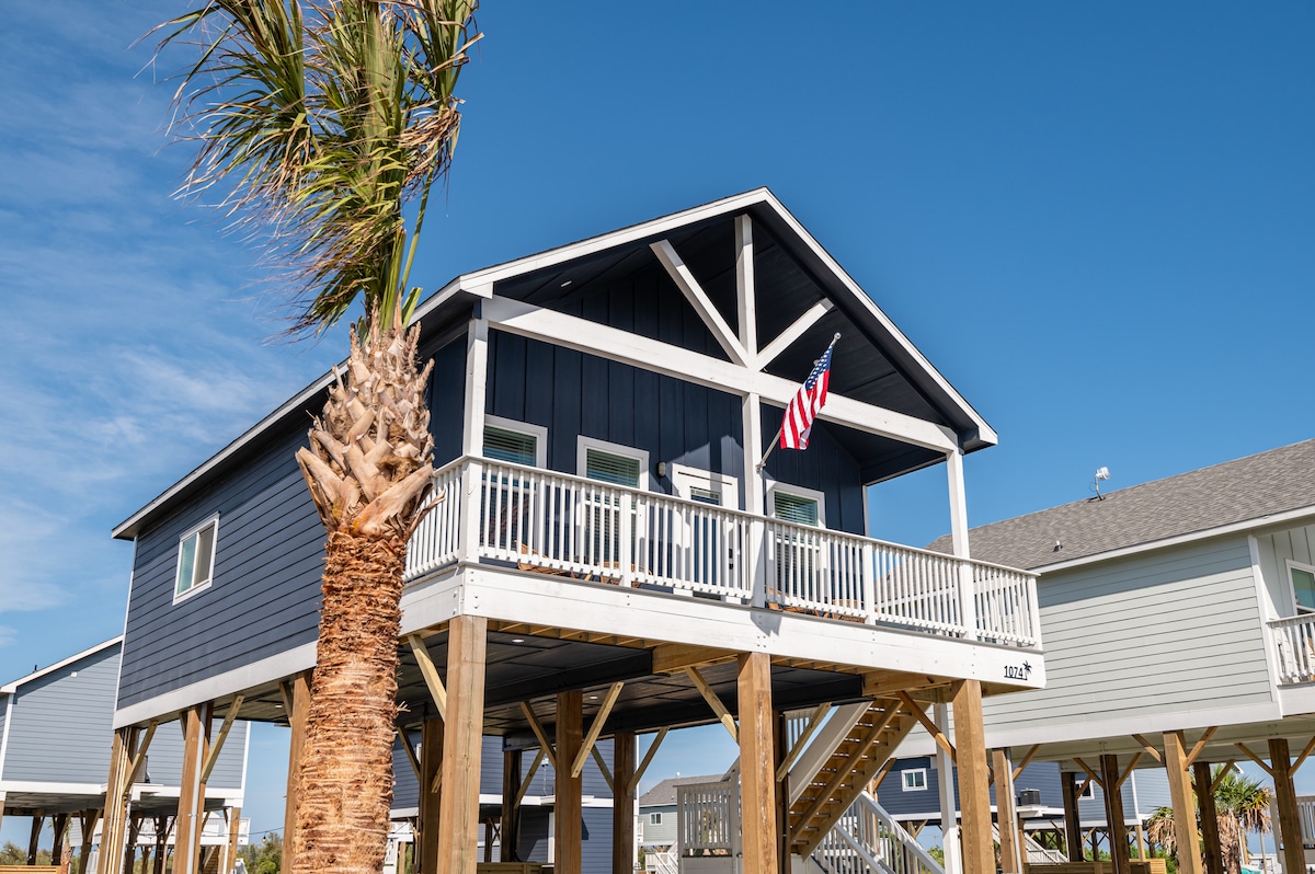 This rich in history tiny house has been newly renovated for DIY series "Restoring Galveston". Moved from its original location to its current resting spot it is the perfect distance between downtown and the beach. The home sleeps 5 with 2 bedrooms and a full bath. Primary bedroom also has direct access to the bathroom for privacy. Full kitchen makes cooking on vacation a breeze. Coffee setup complete with Kcups, creamer and multiple sweeteners. Outdoor lounging on front porch or downstairs!