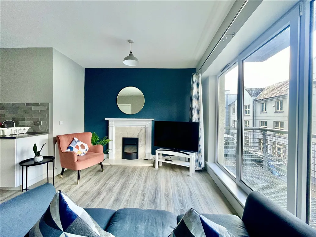 This 1-bed apartment located in the heart of Galway’s downtown Latin Quarter area is less than 1 minutes walk from Galway’s bustling medieval cultural hub area Quay Street. It overlooks The Spanish Arch and has magnificent views of the river corrib and beyond to Galway Bay.