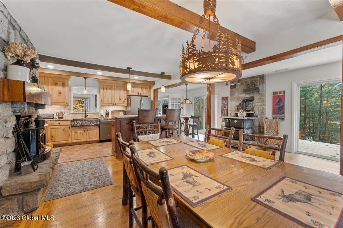 Retreat to this 3 bedroom 2.5 bath home that spreads out across 5 acres. The natural exposed warm wood beams with high vaulted ceilings finished with lustrous metals will give you all the feels. Take in all of natures beauty with the homes oversized windows that overlook the valley and mountains or step out back on the expansive deck and take in some of the most stunning sunsets/views in central New York.