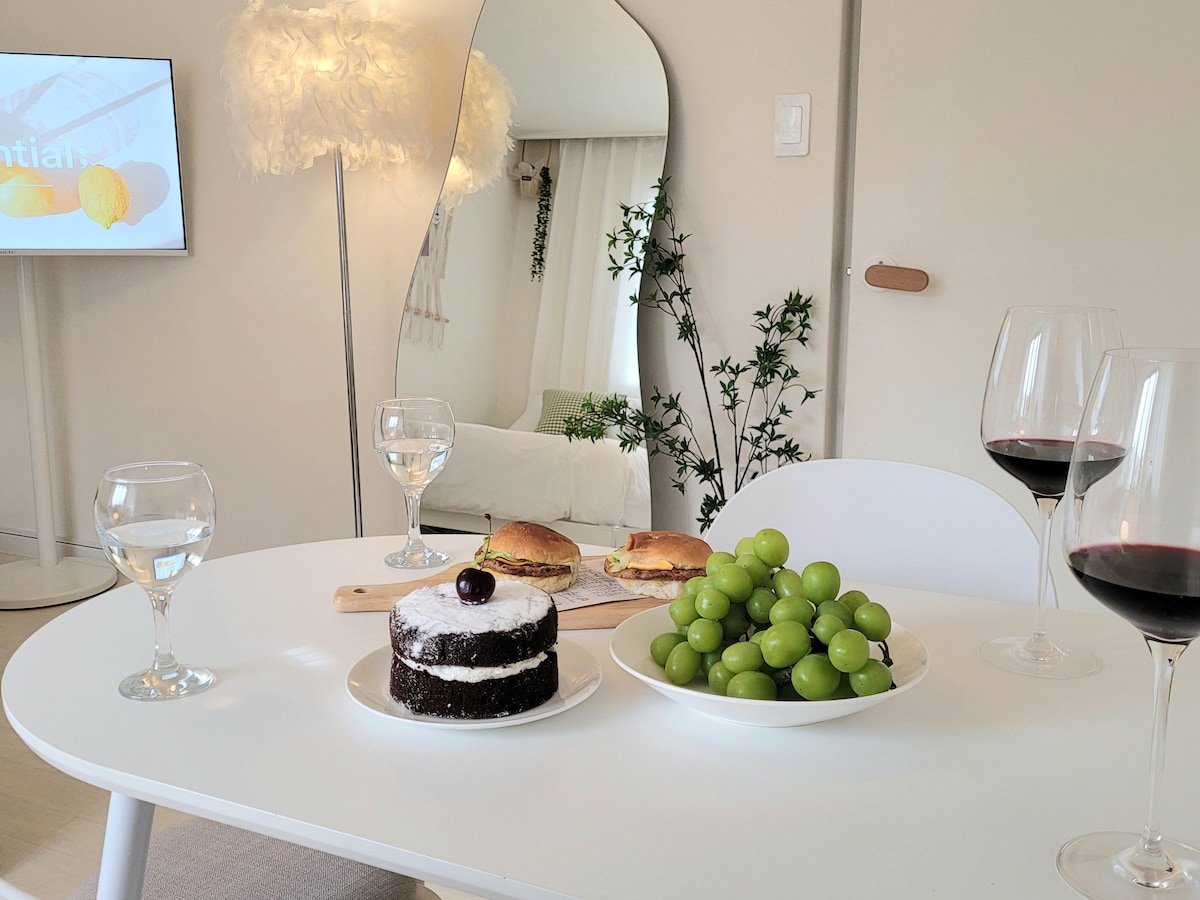Dalon stay, a tranquil and warm shelter like a 🏡moonlight It means‘ the house where the moonlight stays'. Spend a quiet and comfortable time in a space decorated with warm wooden furniture and a mid-century aesthetic interior. Enjoy a movie in the cozy living room or a leisurely brunch at the wooden table. The cozy bedding in the white-toned bedroom will make you forget the fatigue of the day. This is a healing stay in the city where you can make warm memories with your family, lovers, and friends.