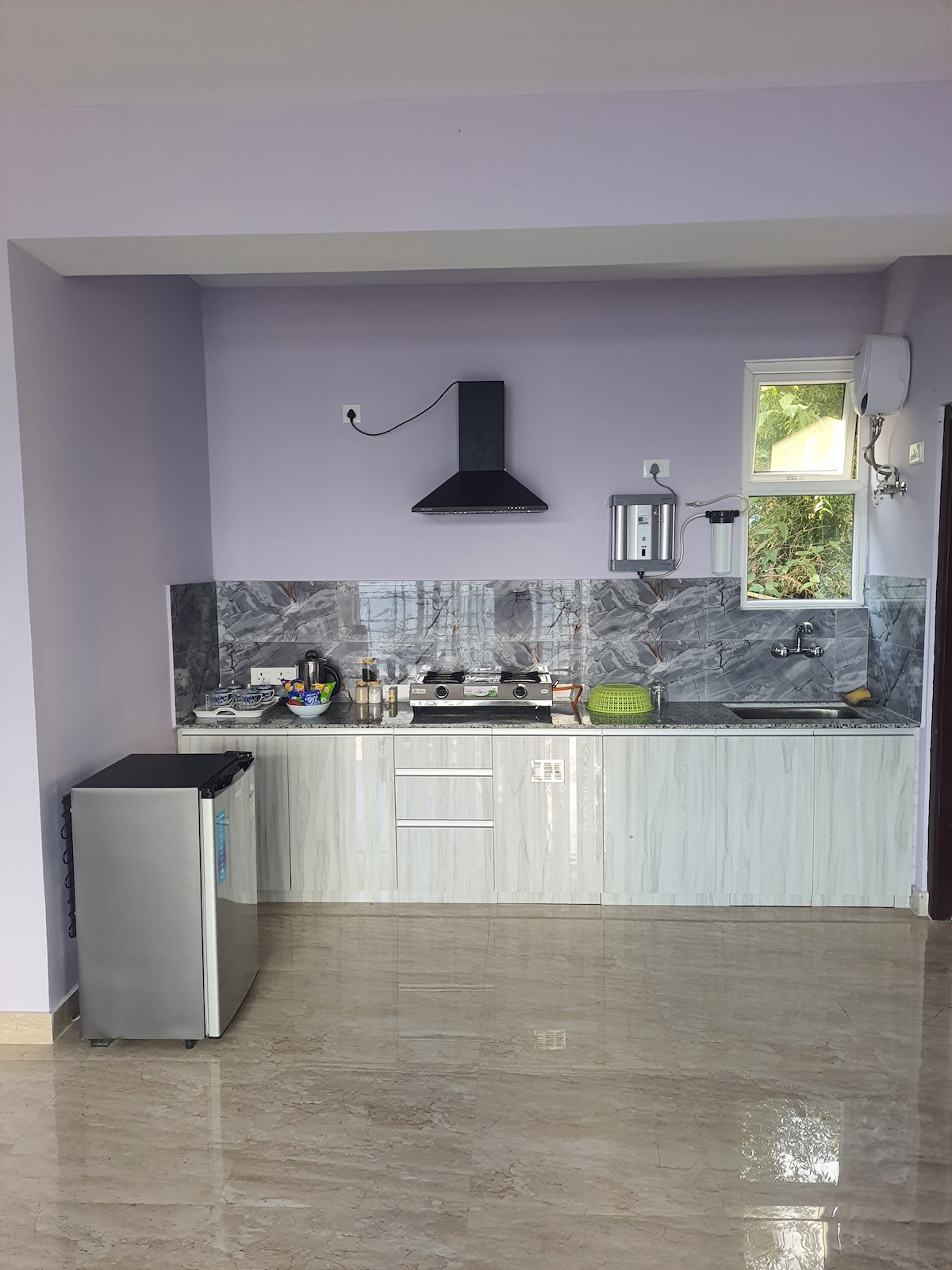 Fully furnished and newly built 3 bhk flat with modern and stylish interiors There are three spacious rooms with full wood double beds and ortho mattresses, and 2 spacious washrooms, one attached with the suite room (room with a dedicated sitting area). The apartment has ample daylight and is located at the heart of MG marg, Gangtok. Fully functional kitchen with fridge, microwave, automatic washing machine and three extra mattresses and pillows / quilts to accommodate upto 9 guests easily.