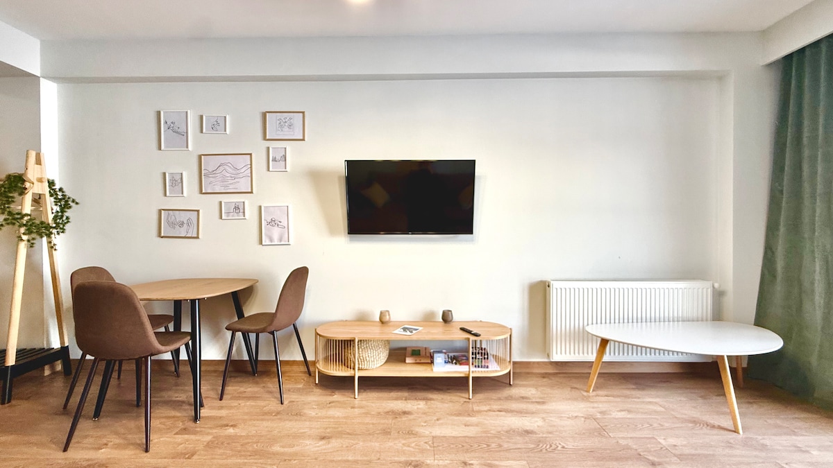 The apartment is in the newly built Atrium apart-hotel, New Gudauri, just a few meters from the gondola lift. It offers a spacious balcony with seating and stunning views of the mountains and ski tracks. This modern apartment includes a kitchen with all essential amenities. It features a private bathroom with toiletries, a seating area with a sofa and table, a smart TV, and high-speed internet. The reviews describe my place better than I ever could please take a look!