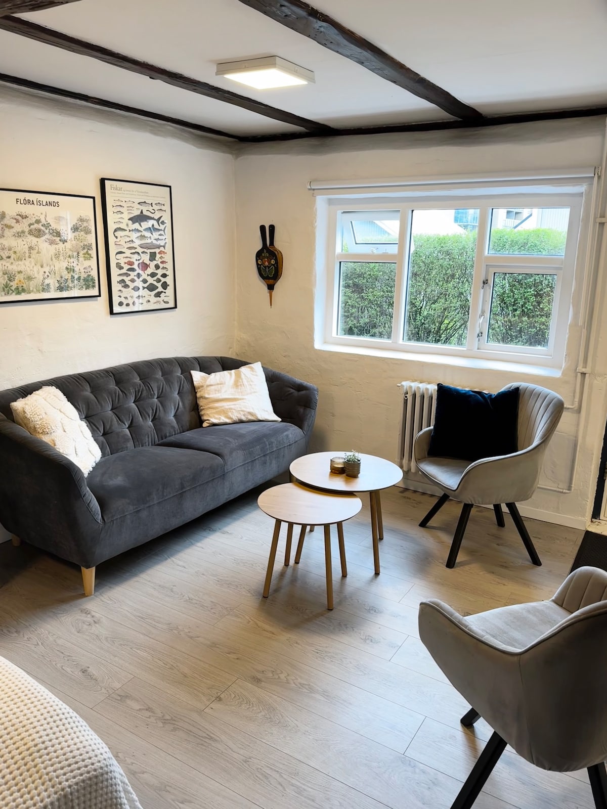 Welcome to a cozy studio apartment, located in the heart of Hafnarfjörður, a charming seaside suburb of Reykjavík. The space is perfect for one or two guests and includes a double bed, a living room area, a kitchenette, and a bathroom with a shower. We’re just a 3-minute walk from the ocean, with cafés, a bakery, swimming pools, restaurants, and shops all close by. Hop on the nearby bus and be in downtown Reykjavík in 20 minutes. Travel cot, high chair and baby toys available upon request.