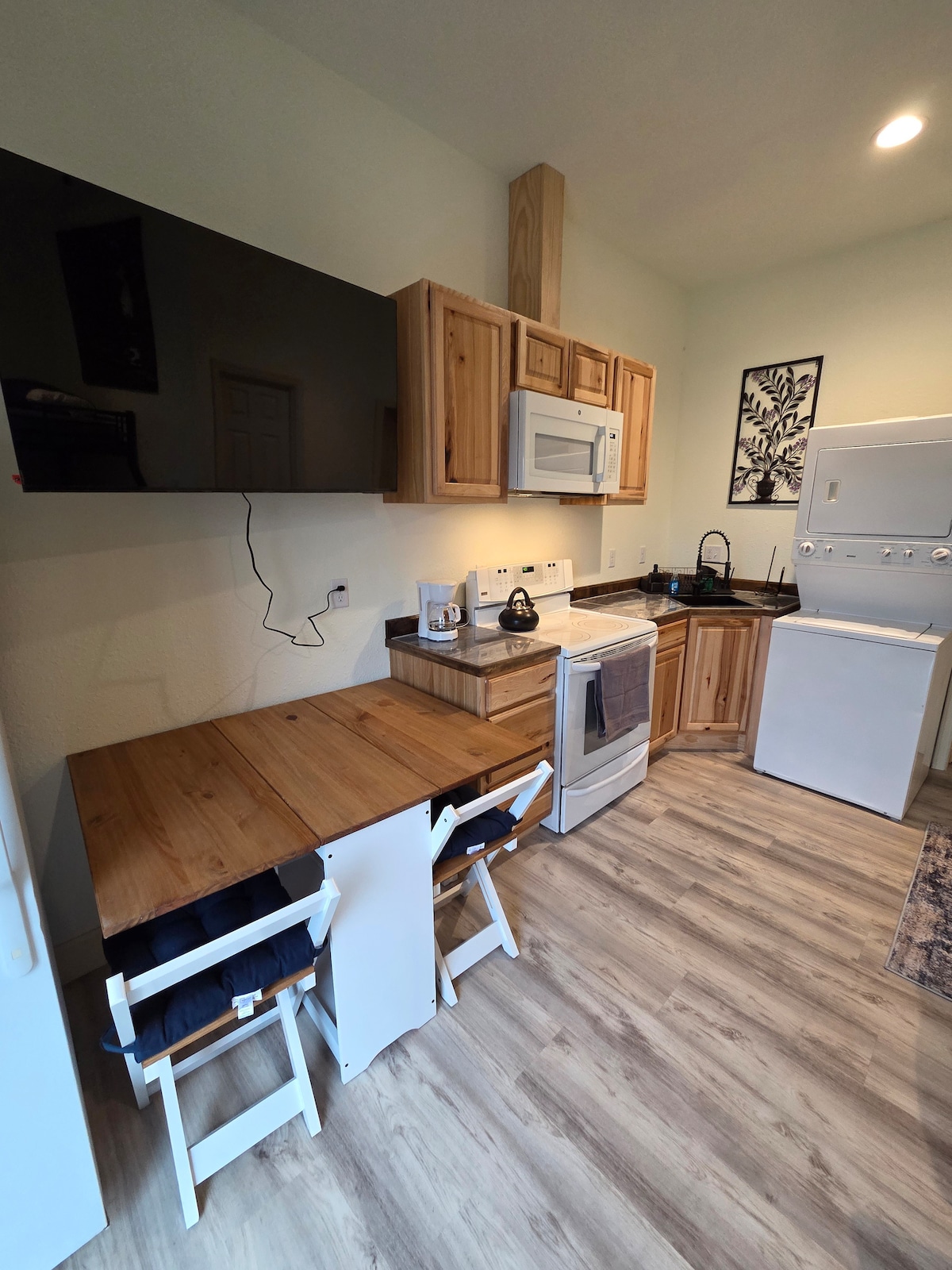The Green Spot Studio is nestled in Boise’s Sunset Neighborhood, with easy access to the best of Boise’s parks, trails, & downtown experiences. The eco-friendly studio boasts a queen mattress on a platform frame, corner shower, WiFi, & Roku TV. The compact, kitchen is well-stocked, with a convection/microwave, two-burner range, compact fridge, & water filter. The studio shares a soundproofed wall with the main house, but has a private entrance and fenced outdoor space complete with grill.