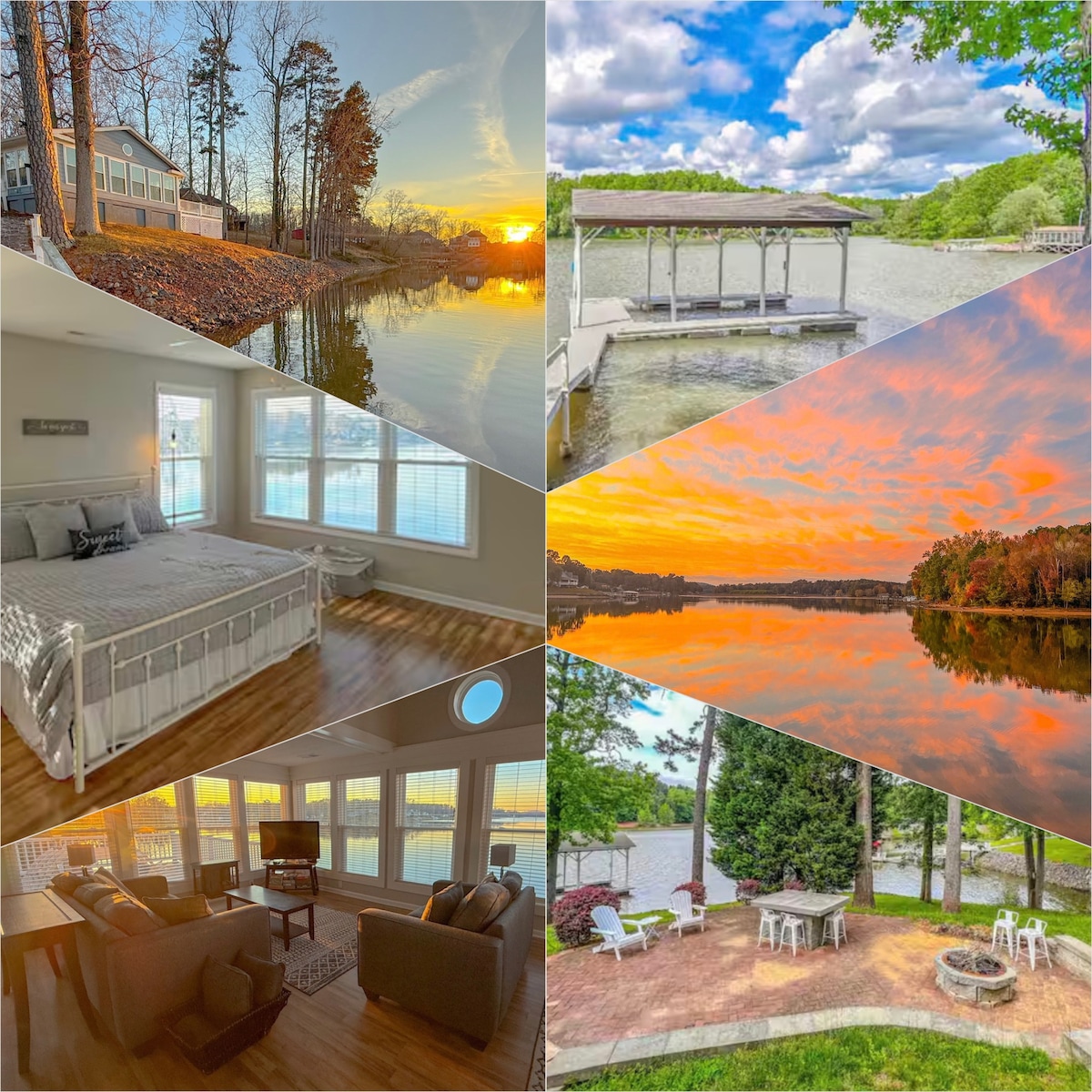 This distinctive and beautiful lakeside home is a 4 bedroom, 2.5 bath that sleeps 8 with everything you need for a lovely vacation in Charlotte, NC. There are 3 king size BR and 1 BR with a twin w/ trundle next to the owner's suite. Private lake access with a boat dock, swing, private deck, fire pit, and a large fenced in backyard: you will appreciate spending time outdoors. The property is located on the main channel with stunning views of Lake Wylie the most beautiful sunsets.