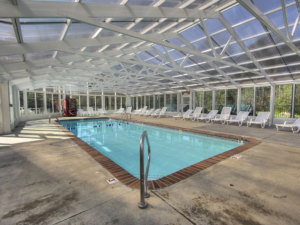 Welcome to SWIMMING IN THE SMOKIES this is a luxurious 5800 sq ft 6 bed/7 bath cabin that sleeps up to 26 people and is ONLY 1.5 miles to Pigeon Forge Parkway. We have a private heated indoor pool, game room, hot tub, theater, and a bunk room with slides....it is an experience that provides something for everyone in the family! We offer 5 king suites, each with private bathroom. In addition, the kids will love the huge bunk room with 4 built-in queen-over-queen bunk beds that sleeps 16.