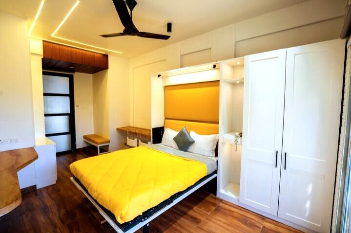 StayWorks is contemporarily designed unique Co-Work Co-live which provides you office work space & comfortable stays at one place. Work : as your personal office with high speed WIFI , Android Smart TV for presentations & inverter AC Stay: comfortable studio with smart double bed having memory foam mattress for orthopedic comfort, kitchenette with amenities & En-suite washroom. it's located on 2nd floor adjoin to Stayinn