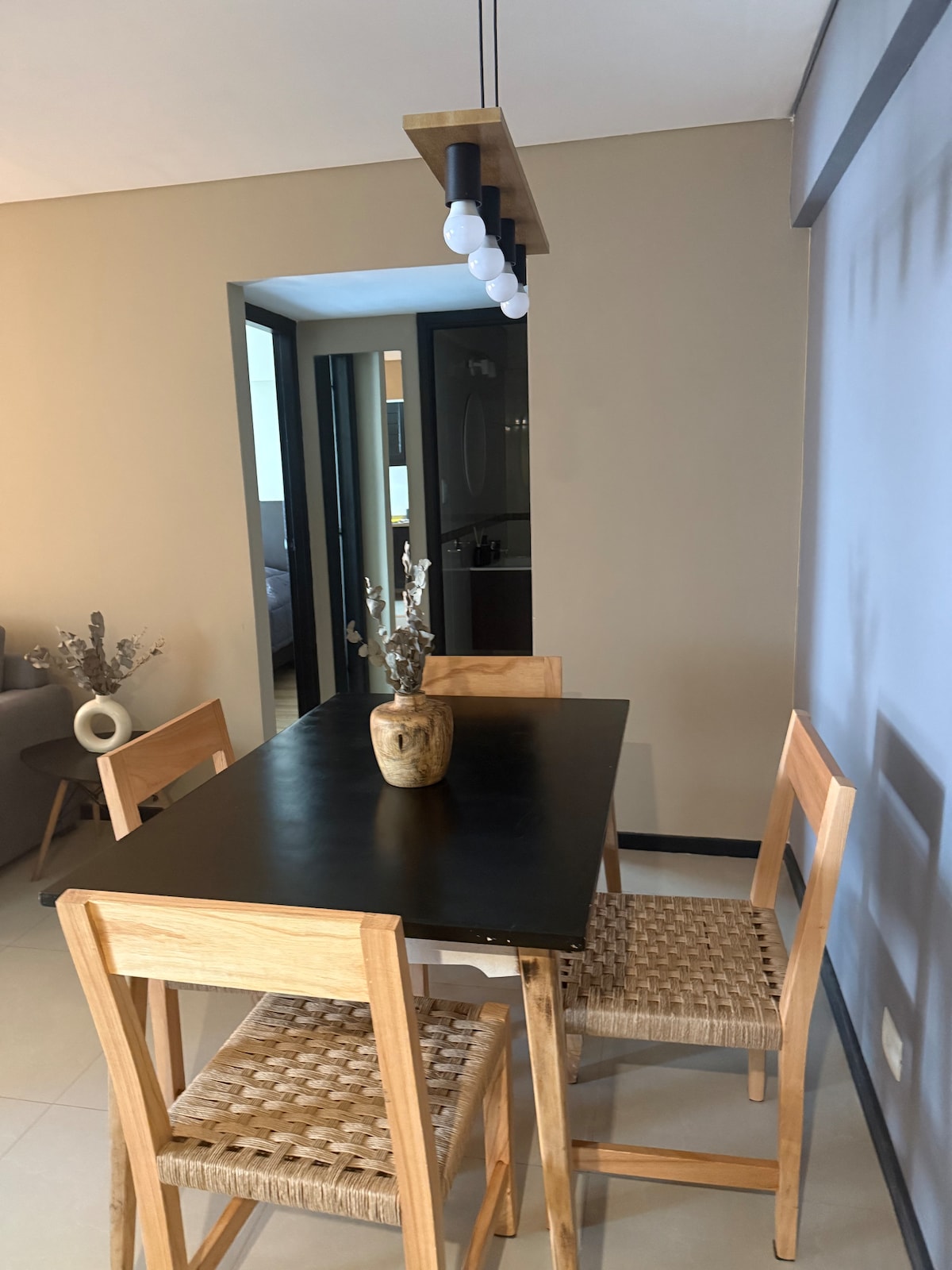 Two-room apartment, minimalist style, very bright with excellent views of the park, the port and the golf course. The location is privileged, being a few blocks from the tourist center of the port, Playa Grande and Alem Street (with many shops and places of recreation); very close to the Sheraton Hotel in a very safe and pleasant area to go for a walk. It has a private garage, automatic gate, with electronic security key and alarm.