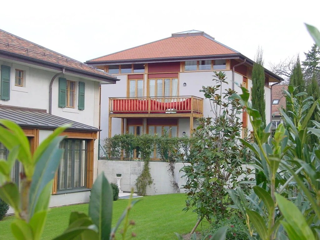 Duplex appartment of 150 m2 with access to 400 m2 garden. This peaceful accommodation offers a relaxing and comfortable stay for the whole family or a team of people who work in Geneva for a short period. The house is built of wood, with ecological materials, volume management and internal breathing. Well equipped with family furniture, regularly maintained. Parquet and tile floors, lime-painted walls. Baby/children equipment and games available.