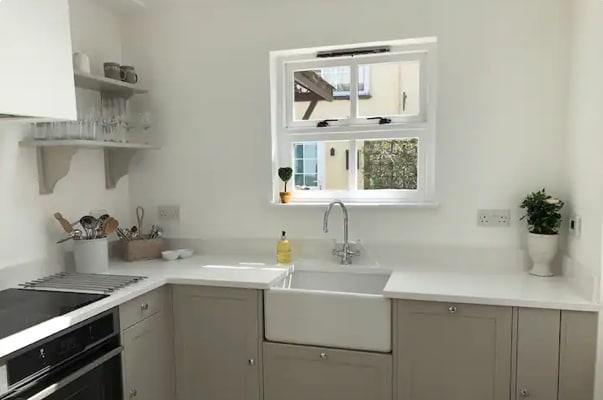 Warm and cosy with underfloor heating, this delightful studio is situated in a private lane just one minute’s walk from The Tarka Trail and Braunton Burrows Biosphere and a 10 min walk to centre of Braunton. Perfect for a couples getaway to this fabulous area. Rose Studio has a fully equipped kitchen which includes full sized oven and hob, microwave, dishwasher, fridge, freezer, and washing machine. There is a comfortable seating area with smart tv and audio speaker. South facing garden patio.