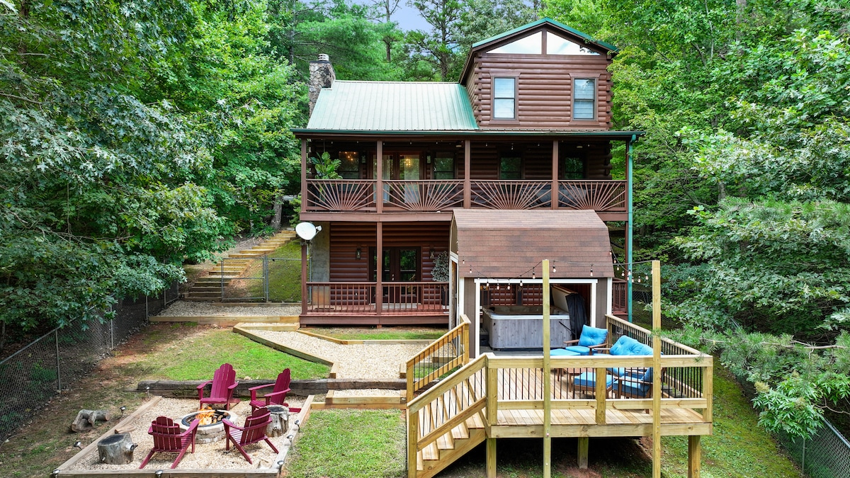 Escape to luxury in this stunning Blue Ridge mountain cabin—just 5 minutes from DT. Enjoy long-range views, 4 stone fireplaces, expansive decks, a hot tub, & a new outdoor space with a fire pit, putting green, & hammock. Features include a well-stocked kitchen, wet bar, EV charger, fresh linens, and a thoughtful starter kit of essentials to make your stay easy and carefree. Peaceful yet convenient, it’s the perfect retreat for relaxation, entertainment, & nature.