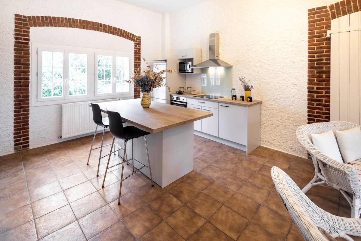 Enjoy a stylish experience at this centrally-located place. Located 50 meters from the Chemin de Compostelle, you will have at your disposal a small 80 m2 house adjoining that of the owners, recently renovated, with a large living room, a beautiful terrace, and two small bedrooms. Bathroom with shower and separate toilet. Parking is private and closed. Bike rental, and possibility of bike garage shelter.