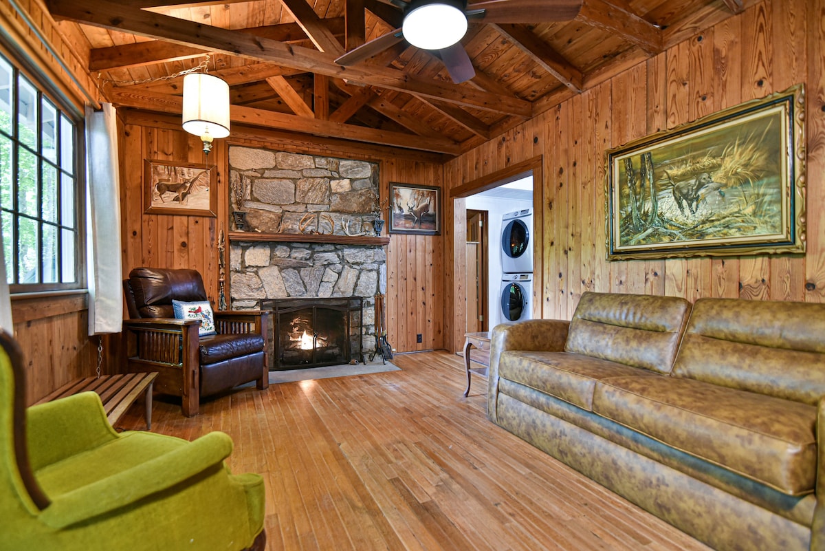 Welcome to Shiner’s Hideaway! a historic family cabin tucked into the Hickory Nut Gorge on Bearwallow Mountain. Built in 1942, this cozy retreat blends classic charm with modern comforts and easy access to nature. Enjoy peaceful mountain surroundings, inviting indoor spaces, and relaxing outdoor areas designed for memorable stays. ✦ Private hot tub in a wooded backyard ✦ Rustic gazebo with fire pit and lighting ✦ Upper level deck with propane grill ✦ Cozy fireplace and comfortable living spaces