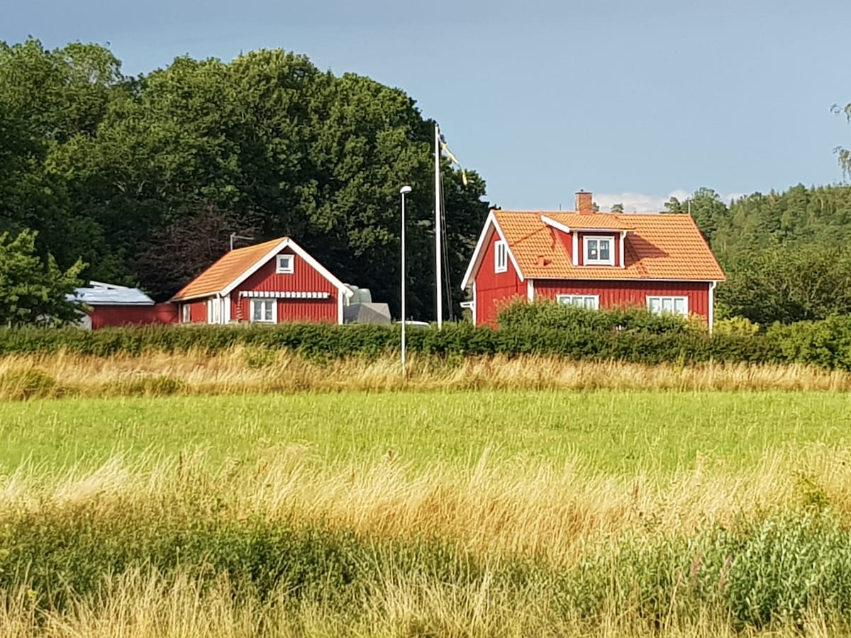 Newly built apt with its own floor of about 80 m2 in our villa which is located near the sea with walking distance to nice child-friendly beach on Grimsholmen, 8 km south of Falkenberg with miles of views of sea, beach and meadows. It takes about 10 minutes to Skrea Beach/Fbg city center or 30 minutes to Varberg , Halmstad or the shopping at Gekås in Ullared. Two bedrooms, shower and toilet, new fully equipped kitchen with dishwasher, living room w TV. Wifi, patio with barbecue possibilities.