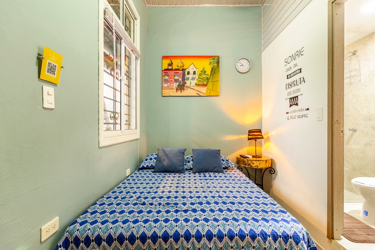 The accommodation is located in the historic and beautiful neighborhood of Getsemani, which is full of colors and a lot of history that you should visit. It has magical streets and a lot of art, but the most valuable thing is its diverse people. You can walk safely in the area. Our house has two floors. The bedroom is on the upper floor, which has 3 beds, air conditioning, a bathroom, and a small balcony. On the first floor, we have a living room, an equipped kitchen, a bathroom, and a patio with a washing machine.