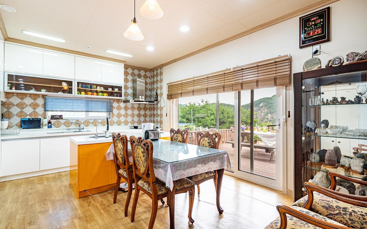 ☆☆ In spring, you can take a walk with your family in the garden full of flowers, in summer, you can use the outdoor children's swimming pool alone without cost, with the sound of refreshing water flowing in the valley, and in autumn, you can enjoy the cool breeze and colorful leaves blowing from the valley. In winter, you can roast sweet potato nights on a campfire, and you can use a barbecue grill that can be used without cost. When it snows, walk down the path with your friends. ☆☆ The 76m2 eco-friendly wooden house is fully equipped with amenities.In the hot summer, there are 2 air conditioners and fans in the living room and bedroom, and a Duratex cooling pad is also prepared on the bed. In addition, we prepared a Kuchen rice cooker and rice in the refrigerator so that you don't have to buy a half-cooked rice. Please come and prepare food at any time and spend a comfortable healing time. ☆☆ There are Hwayang Valley, Seolunsan, Gongrimsa, and Sanmagi Old Road in the nearby streets, and there are Nonghyup, a large supermarket, Cheongcheon Traditional Market, a forest cafe, and a restaurant where you can have a delicious meal within 5 minutes.