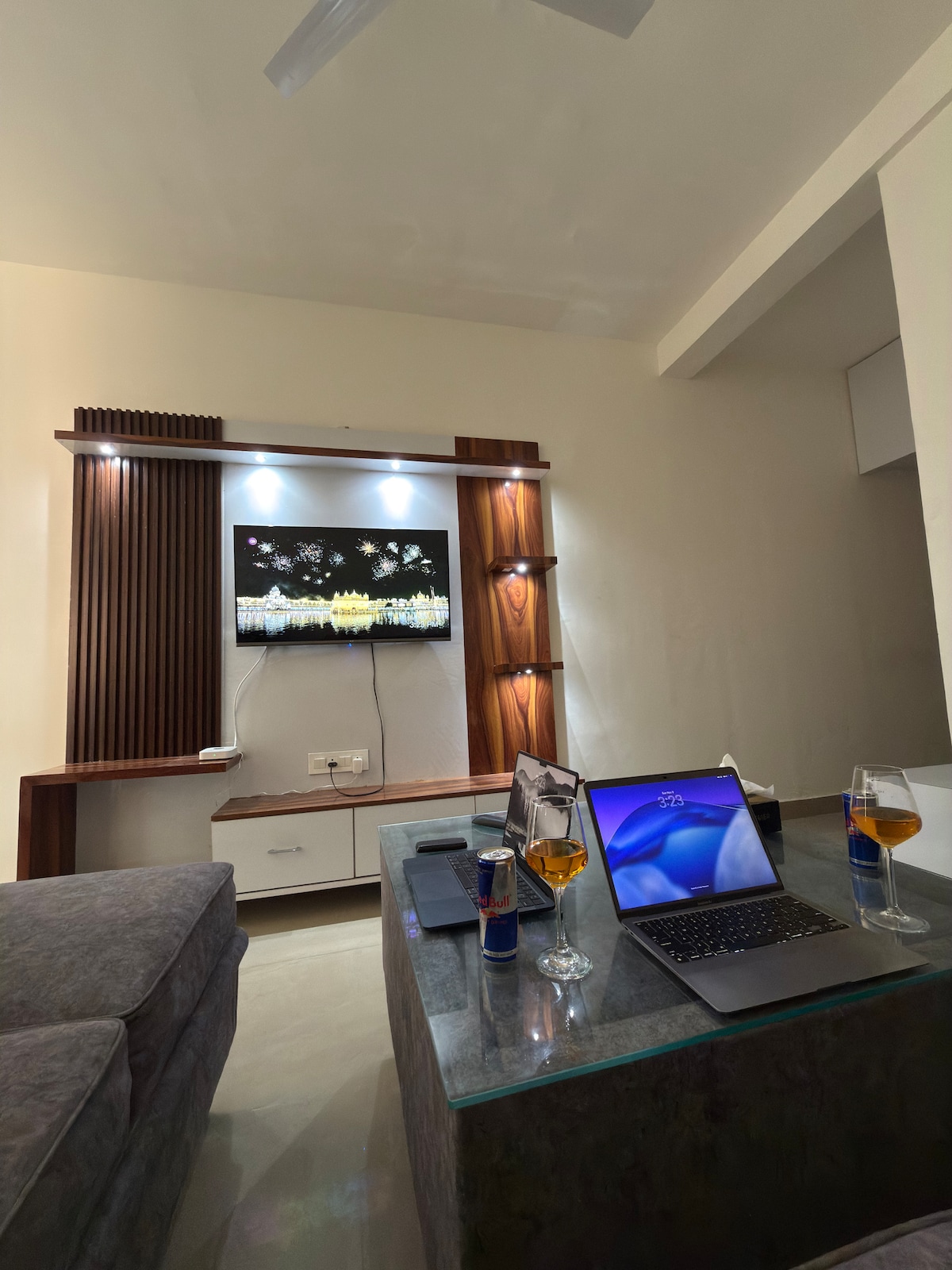 Wake up to breakfast & tea/coffee in this peaceful urban retreat, a space that feels like a warm hug, nestled ~3 mins from Golf Course Road, yet SO peaceful! Includes complementary essentials for your breakfast & tea/ coffee. Every small detail such as scented candles, air diffusers, sound system, mood lighting, personal care items, cooking essentials, board games & decor items are thoughtfully curated to make your stay cozy, comfortable, and unforgettable." 🏡💛