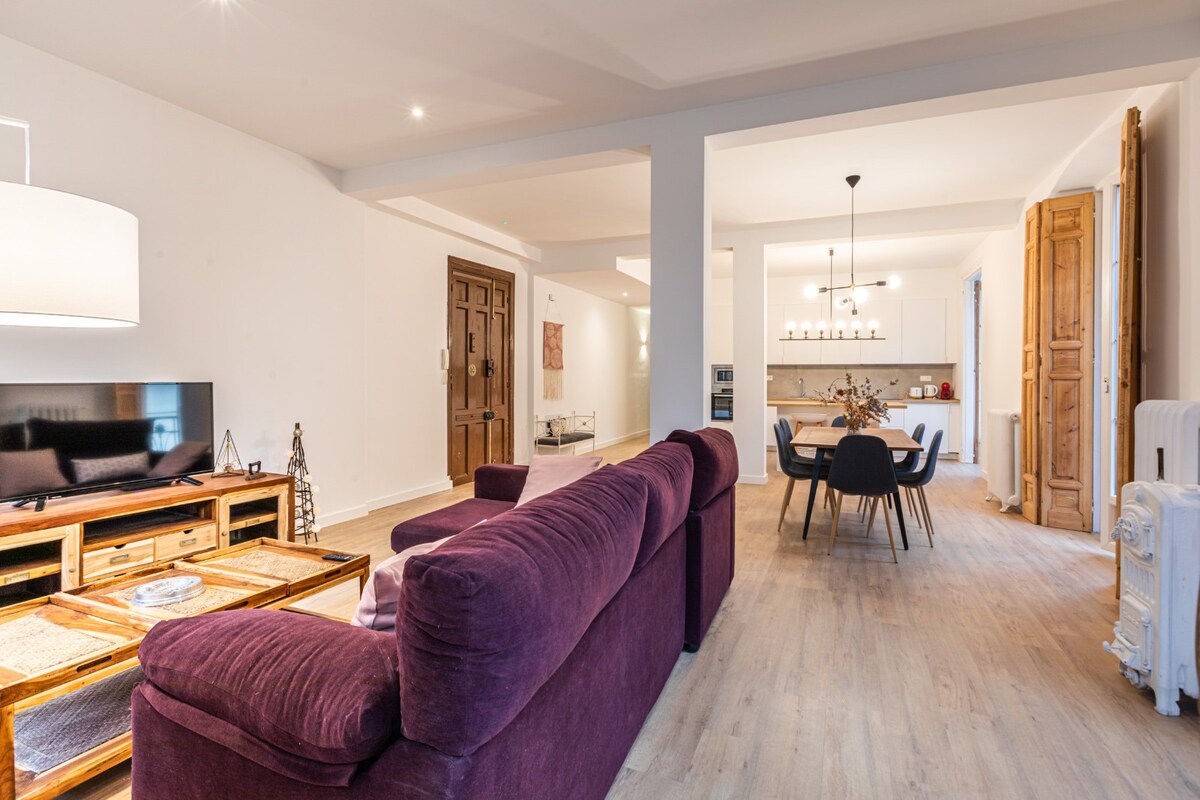 Enjoy Gijón in this beautiful newly renovated apartment right in the city's mall. Ideal accommodation for families as it consists of three bedrooms: two double and one single and two complete bathrooms (one in main room).The beach of San Lorenzo is located 150 meters away. There is a nearby car park, 50 metres away (€17/day), which belongs to a small shopping centre with a supermarket and a gym. The Plaza Mayor and the Marina are located within 8 minutes walking distance