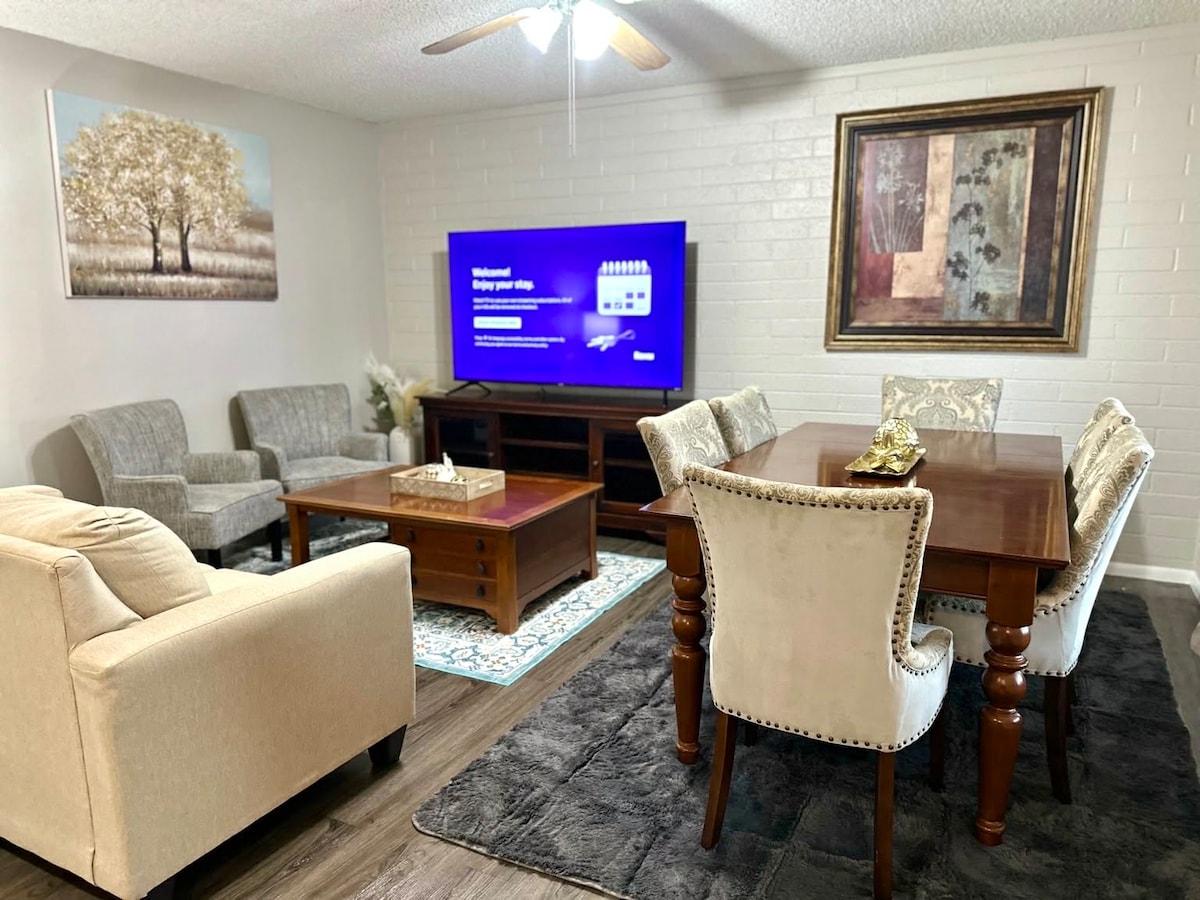 Experience Chandler in a spacious luxe condo with spectacular vibes and amenities The Unit: → Lightning Fast Wi-Fi → Dedicated workspace + Monitor → Comfortable King Bed → 65" Living Room TV + Netflix → 55" Bedroom Room TV + Netflix → Fully Stocked Kitchen → Washer & Dryer → Close to Hospitals 5 Star Amenities: → 3 Resort Pools and Jacuzzi → Cabanas and Lounges → 2 Full Size Gym Ideal for business travelers and corporate clients looking to experience the unique culture of Chandler.
