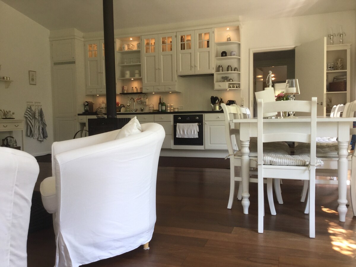 This unique place has a style all its own. The house is built of solid timber that has been felled in Norway. The house oozes coziness and warmth and serves as a small oasis. The sleeping area is arranged on a mezzanine with a skylight window. Delicious materials have been used. Beautiful marble countertop in the kitchen and beautifully handmade dining table. Furniture is carefully selected with a focus on sustainability. Textiles in organic materials have been selected. The garden is large and beautiful and there is a very short distance to the sea.