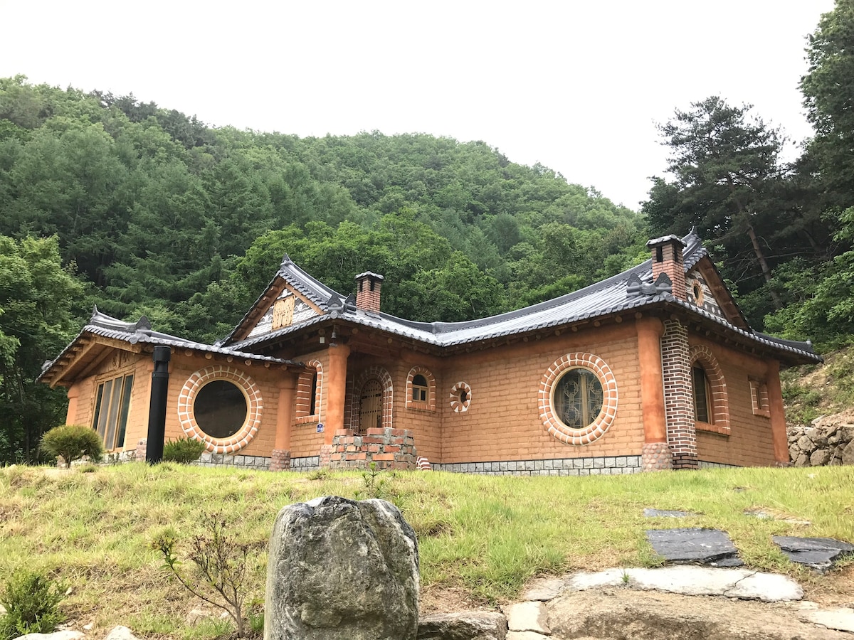 Kimcheon Water Mountain Natural Loess House, a 115m2 private house located in the forest, is a resting place for groups and families.