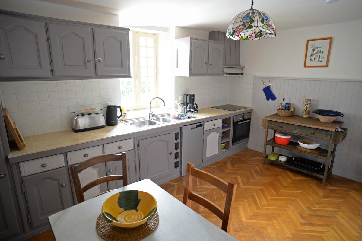 🏡 Maison familiale avec 3 chambres spacieuses, chacune avec salle de bain privée 🛏️ 2 lits doubles + 1 chambre avec 2 lits jumeaux (convertibles en lit double 180x200) 👶 2 lits bébé disponibles 💼 Bureau, salon & grande cuisine équipée 🌳 Jardin clos avec verger & murets en pierre 🏊♀️ Piscine privée avec pool house, évier, table & plancha ✨ Parfait pour un séjour confortable en famille ou entre amis
