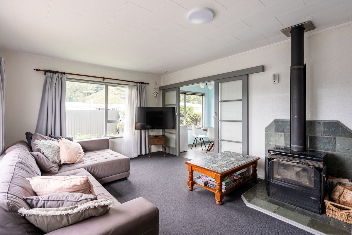 If you are here for mahi, tangi or a breather, this bach wraps you in warm comfort. A place to unwind, recharge and exhale after a long day. 🌞 Free WiFi 🍿 Free Netflix ❄️ Air con (main house) 🌻 Fully fenced 🍳 Full kitchen 🚿 Strong shower Cosy, peaceful rooms in a older style home to help you rest and reset. Sleeps 7-10 across the house and cabin. Cabin built 2025. The cabin is included for bookings of 8+ guests. For bookings under 8, use of the cabin will incur an extra cleaning fee.