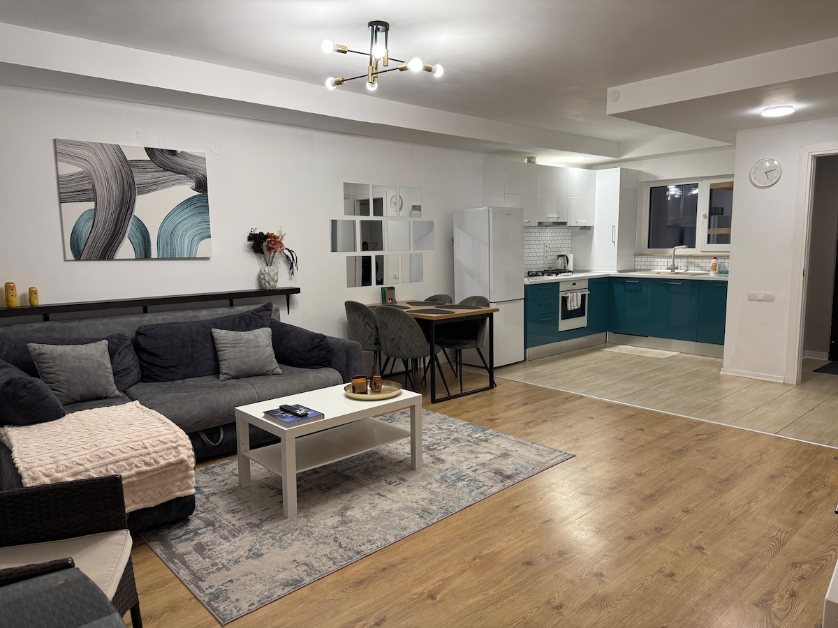 Apartament cu un dormitor şi living, amplasat în cartierul cu o infrastructură dezvoltată - Greenfield, la o distanță convenabilă de Aeroportul Internațional Henri Coandă și celebrul SPA Therme. Beneficiați de parcare privată ,WI-FI, aer condiționat , mașină de spălat rufe, cuptor, plită electrică și aparat de cafea. Cu o priveliște minunată către pădure, apartamentul dispune de un balcon spațios de 8 m2.