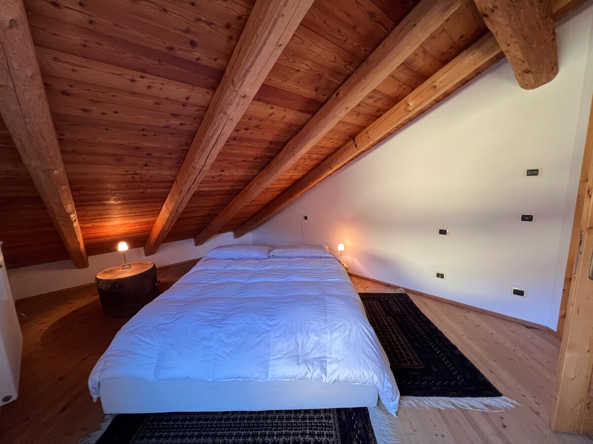 Charming apartment on two levels consisting of: on the ground floor, a full kitchen with fridge, freezer, dishwasher, oven and induction cooktop; table with bench and chairs, sofa, TV, pellet stove and bathroom with shower. Attic floor sleeping area with a double bed and a bunk bed, the space is adaptable to different needs and is divided by wardrobes. Guests have free WiFi, outdoor parking, and ski/snowboard/bike storage.