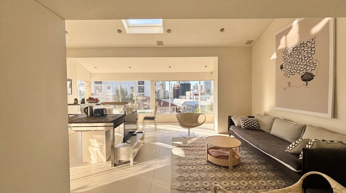 Experience Tel Aviv from above! A stunning penthouse suite on the 7th floor in central Givatayim, offering a breathtaking panoramic view of the TLV skyline. Enjoy a prime location surrounded by cafes, restaurants, and shops, with easy public transport access to Tel Aviv's center. Note: The unit is a completely private top floor within a duplex (hosts live downstairs), ensuring total privacy and quiet for your stay. Perfect for business travelers and tourists seeking a peaceful urban retreat.