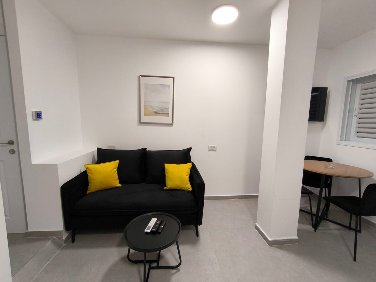 Modern studio apartment in Tel Aviv’s Old North, just an 8-minute walk to Hilton Beach. Located on the 5th floor with elevator access (+ 10 steps), it features a comfortable double bed, fully equipped kitchenette, dining area, A/C, Wi-Fi, and a big private balcony with seating. The building includes a bomb shelter on the 5th floor. Steps from Dizengoff, cafes, shops, and public transport—ideal for solo travelers or couples.