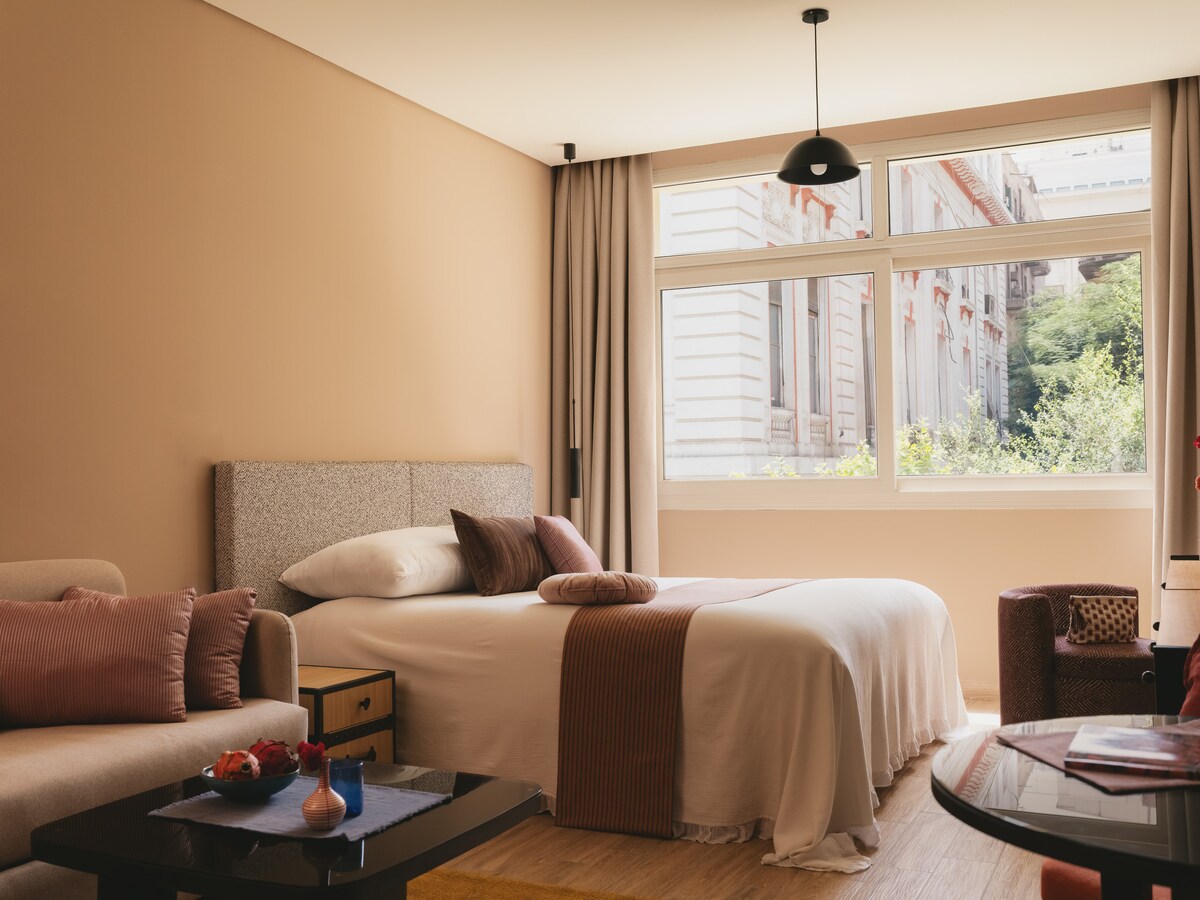 Experience Downtown Cairo from a space steeped in history and full of character. Once a bank, now reimagined as a boutique stay, Saint Joseph Hotel brings playful design and colorful charm to one of the city’s most iconic corners. Overlooking Talaat Harb Square and steps from the Egyptian Museum and Tahrir, each studio blends modern ease with a vibrant, heritage-rich vibe. Whether you're here to explore or unwind, this is your laid-back launchpad in the heart of it all.