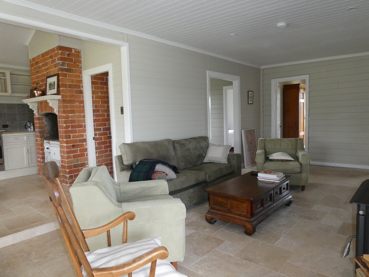 Eco-friendly, super-comfortable space with exceptional views in every direction. You will relish the clean tablelands air and absolute peace and quiet of country living. With verandahs all round, stone walled garden beds, luxurious bath with valley views, deep leather lounges, gorgeous farmland all round and the peace and quiet of a beautiful New England setting, you probably won't want the Wifi, 65" TV etc. But it's there, anyway! Perfect for a family or two, or for a quiet getaway.