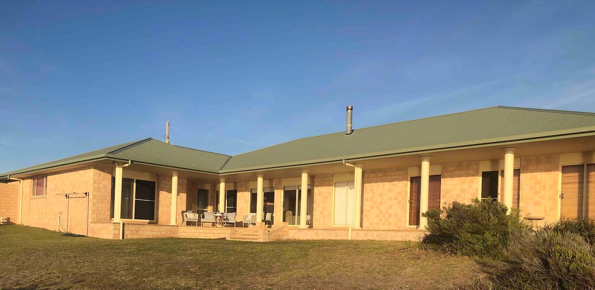 Robeathyn is a spacious 4 bedroom beach house set on a headland with sweeping vistas of Discovery Bay and the Southern Ocean. The house is one of two set on 10 acres of natural bushland and nearby access to the Great South West Walk. Ideal in all seasons; you can enjoy the ocean crested sunsets on the expansive patio as you sip on a wine or two, alternatively you can snuggle in around the fire and enjoy the same amazing view from the lounge area.