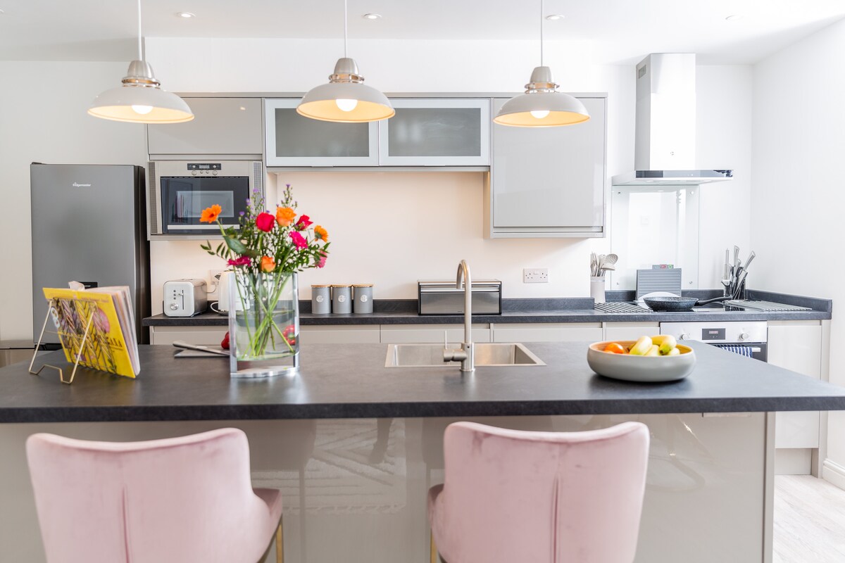 Newly refurbished, the Painswick apartment is just a short walk from Cirencester’s vibrant pubs, cafés, and shops. Its moody, maximalist Victorian style—featuring deep greens, rich purples, and touches of gold—creates a striking blend of modern comfort and classic Cotswold charm. Spanning two storeys, the Painswick sleeps four across one king and one twin room, both designed for restful sleep. The open-plan kitchen, dining, and lounge area offers the perfect space to relax and unwind.