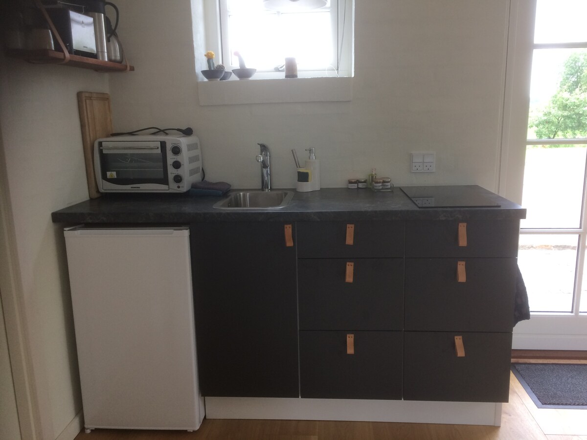 Stay in a cozy annex located in the garden next to our house in the middle of Assens town on the island Funen in the middle of Denmark. The annex contains a combined sleeping- and living room with a 140x200 bed, a small kitchen with a small fridge, a little oven, coffee-maschine and electric kettle and toilet with shower. There is room for 2 adults.