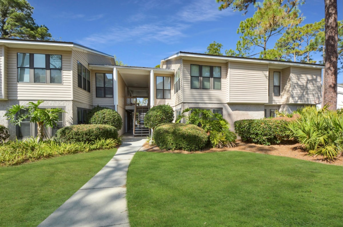 GROUND FLOOR unit~GREAT LOCATION(mid/South Island)~walk to Redfern Village(many shops and restaurants), Southern Soul, Chickfila, Starbucks, etc~quick drive to the beach and pier~NEWLY REMODELED~GATED FAMILY ORIENTED COMMUNITY~ reliable WiFi~TV and sofa in living room~king bed & TV in master~queen bed & TV in spare~twin sleeper sofa in sunroom~pool & tennis court~NO PETS or ANIMALS ALLOWED, SEE RULES FOR HIGH PET FEE. **Parking -- My HOA does not allow work/business vehicles**