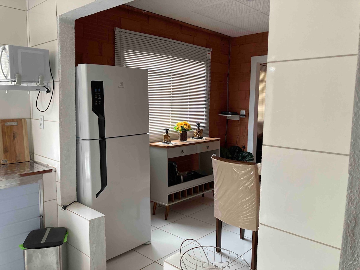 "This little corner of the heart offers a unique experience of tranquility and silence. Located in Senador Canedo. 1 cozy bedroom, 1 living room and 1 full bathroom, all just 18 km from the airport, you will be 15 km from Goiânia, 15 km from the racetrack and within walking distance of several shopping centers and attractions such as Flamboyant and Bela Vista Shopping. The perfect place for those who want to enjoy the best of both worlds: the quiet of a home and the proximity to the amenities of the city!"