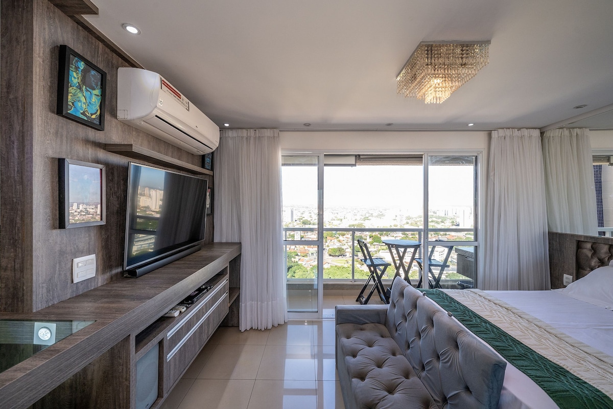 New 2-bedroom apartment on the 11th floor, super comfortable, located near the Flamboyant Park, super safe building and next to the Pão de Açúcar supermarket, the most upscale region of Goiânia, Netflix logged in, Wi-Fi, 55'' SMART TV, Air conditioning, dining table, balcony with barbecue grill, bistro, hammock and the most beautiful view of the city.