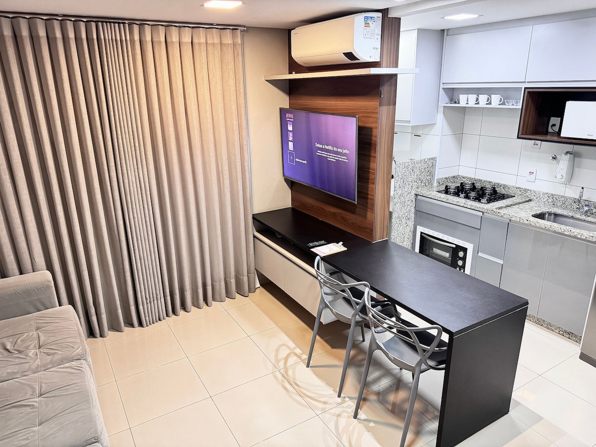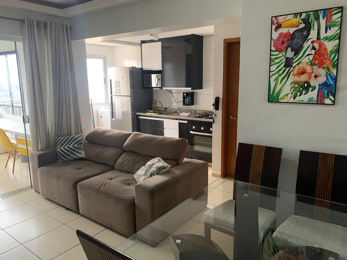 Super comfortable 2-bedroom apartment on the 23rd floor, located near the Flamboyant Park, and next to the Pão de Açúcar supermarket. Located in the most upscale region of Goiânia, Netflix logged in, Wi-Fi, 50" SMART TV, Air-conditioning in the 2 bedrooms, dining table, microwave, cooktop, barbecue, hairdryer, balcony with hammock and the most beautiful view of the city.