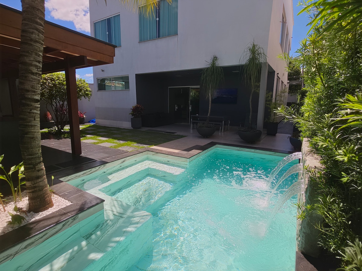 This stylish home is perfect for group travel. It is in a good location, 5 minutes from Goiânia's largest mall, Flamboyant, as well as the Serra Dourada Stadium, the Race Track, and Goiânia's most upscale condominiums. It is very cozy, and you will have a wonderful view, being able to enjoy several areas of the house that have a different charm at each time of day. You will not regret it, you will be surprised.