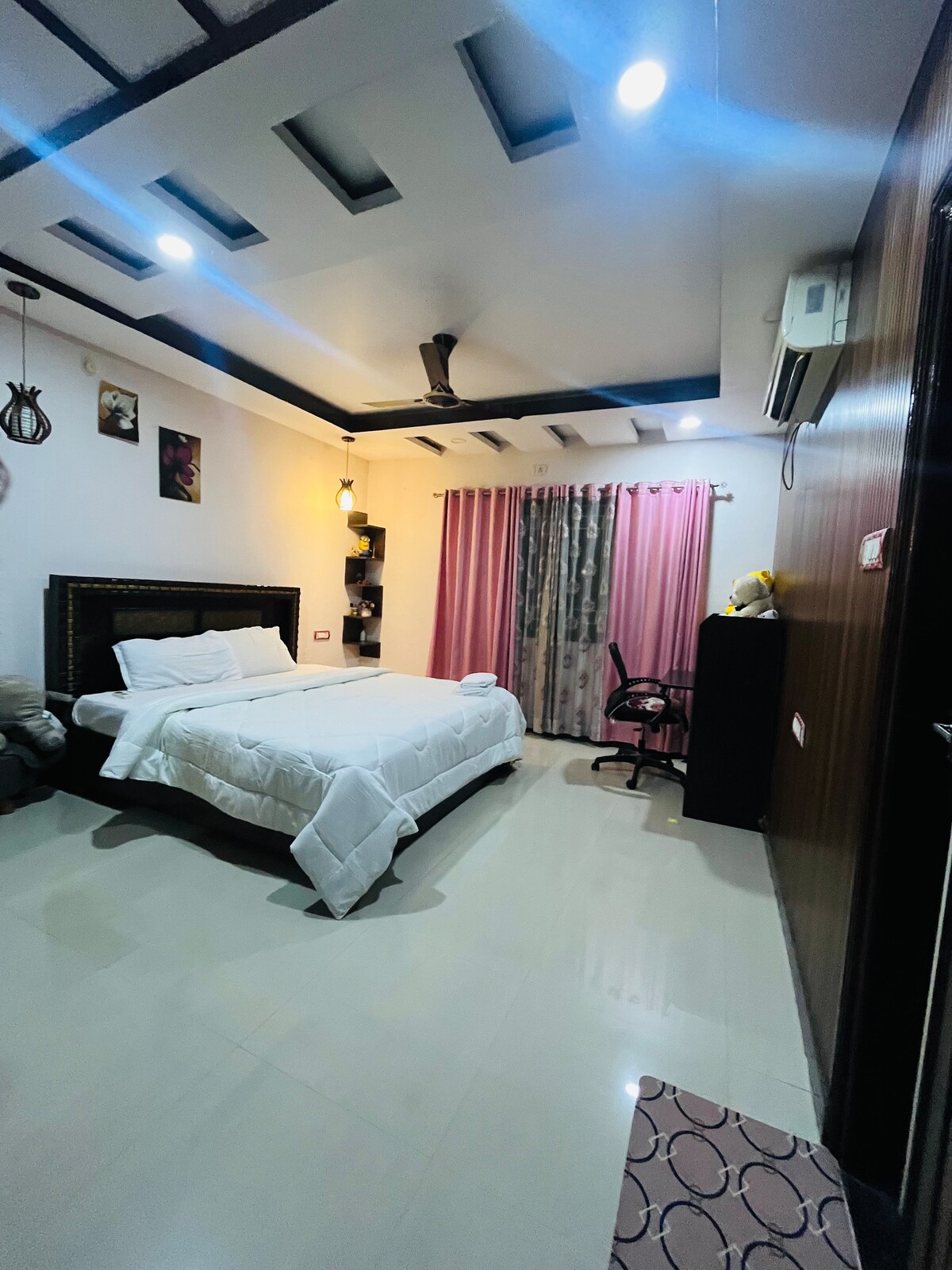 It’s a spacious 3BHK bungalow with huge rooms, a large hall, and a balcony — perfect for a comfortable family getaway. Each bedroom has its own private bathroom, and the kitchen is fully equipped with all the basics you need to cook. You’ll also have: • 40 Mbps high-speed Wi-Fi • 55-inch Smart TVs • A private garden area Ola/Uber pickups are easily accessible. Enjoy a quiet, peaceful stay, while being just 2 km away from Ambuja City Centre and other lively places.