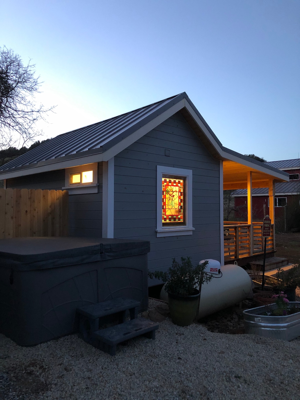 Try on a slice of farm life from our Barnview Bungalow. This tiny house studio is right in the middle of our functioning farm. It comes with a large covered deck with views of our young apple orchard and big red barn. If you dream of wide open spaces, big skies, and farm animal encounters this is the place for you. Accommodations include: A full sized memory foam bed, kitchenette with mini fridge and two stove burners, stone-floored bathroom with a large walk-in shower, and washer and dryer.