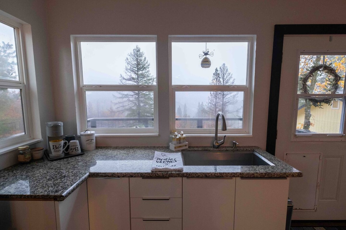 Take it easy at this unique and tranquil getaway. You will be greeted with beauty and fantastic views nestled among giant Ponderosa Pines, a wide variety of wildlife and birds galore. Bald eagles have been spotted on occasion! As a guest you will have access to a very private spot on the river where you can try your luck panning for gold or fishing. You can also just relax while reading a good book, skipping rocks or just dip your toes in the water.